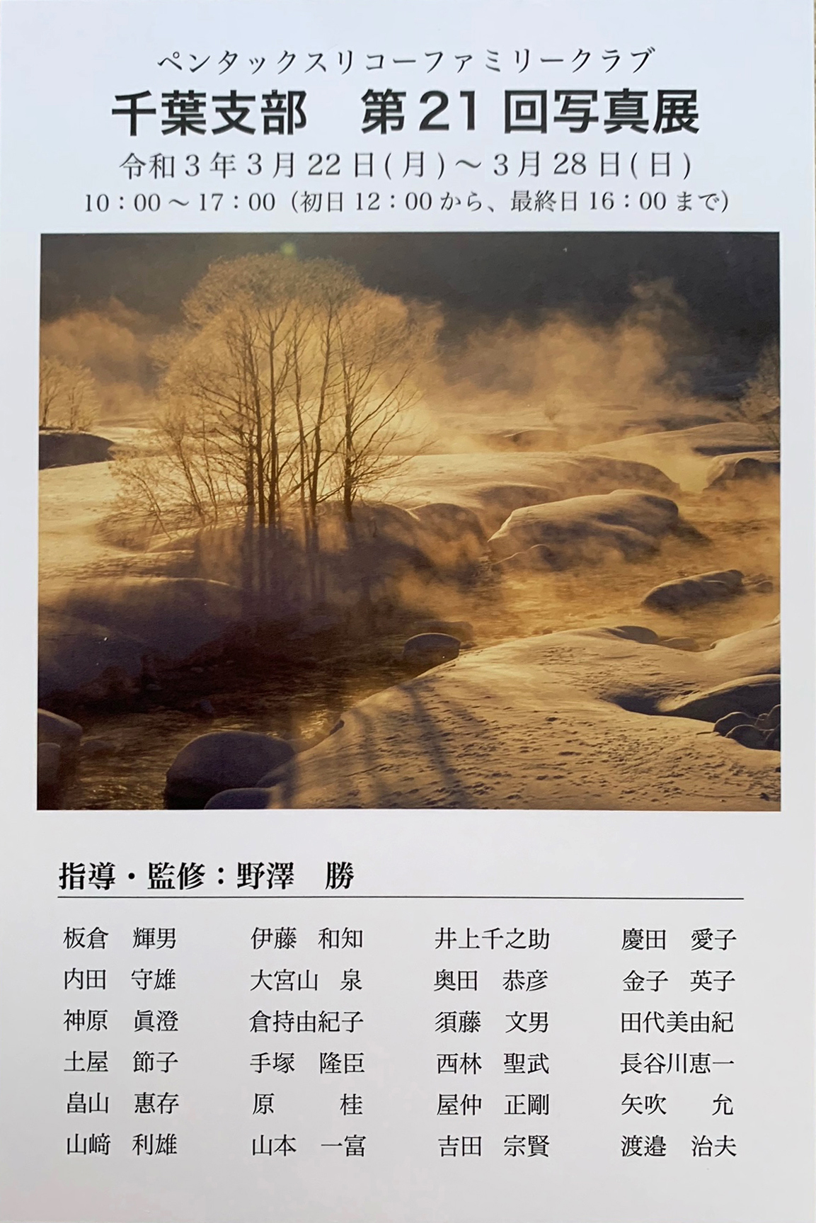 当初2月を予定していた写真展は、緊急事態宣言の発令を受け、 3月に延期することになりました。 開催日: 3月22日(月)~3月28日(日) よろしくお願いいたします。 ![]() |