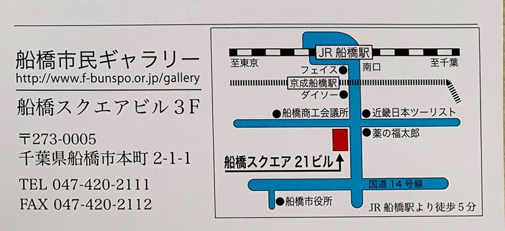 二度延期となった千葉支部展ですが、4月の開催が決まりました。 日時:4月19日(月)~25日(日) 会場:船橋市民ギャラリー(船橋スクエアビル3階) よろしくお願いいたします。 ![]() |