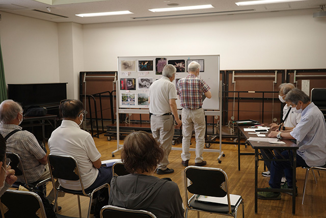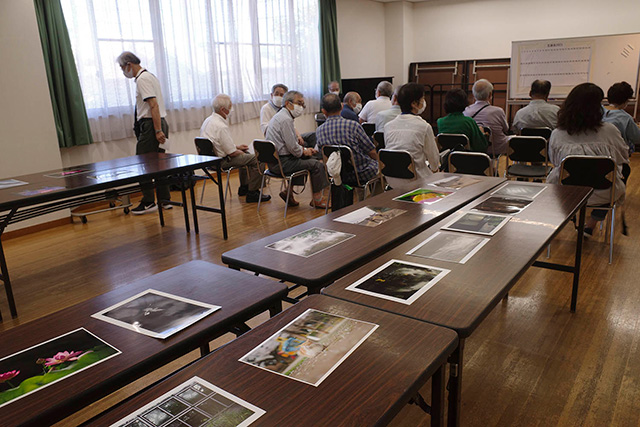 6月は講師がいない自主運営の例会でした。 講評会は通常通り、各自3点の作品データを提出して、スライド投影で鑑賞。 今回は互選会ではなく、出品者が撮影場所や狙いを説明して、それに対して、他の出席者が意見や感想を述べるという形式です。 お互いの作品をよく観る、自分の意図を説明する、それが観る人に伝わっているかどうかを知る、いい機会となりました。 その後、今年度の「写真展」について話し合いました。 大多数がやはり、年に一度の発表の場としての写真展は大切であるという意見のため、今年度も開催することとなりました。 会期は例年どおり、2月末~3月あたり。 会場や額装についてはこれから再検討する。 今年度は、全員共通の「課題」を設けての作品づくりは行わない。 7月の例会では会場についての検討を予定しています。 (文=手塚隆臣) |