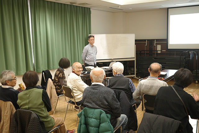 今年度最後の例会です。 今月は、写真展でもたいへんお世話になった池永先生が担当です。 毎月の例会を重ねることが写真展につながり、 毎年の写真展を重ねると、いろいろなことが見えてくる。 と言われたことに、大いに納得しました。 (写真・文=雑賀節子) |