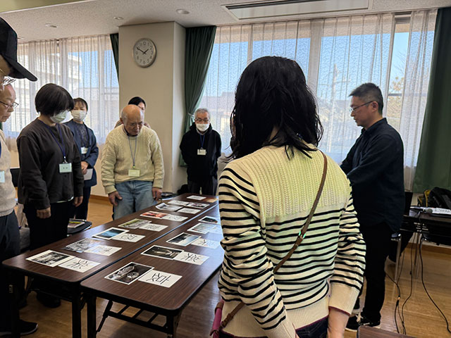 今月はゲスト講師をお迎えしての例会です。 昨年も来ていただいた安藤智仁さん。 上手くならない写真の学校 Andy's Photo Academyを主催されています。 → Andy's Photo Academy(インスタグラム) いつもの講評ではなくワークショップ形式は新鮮でした。 会員みなでテーブルを囲み、笑い声、会話がはずむ時間を過ごしました。 写真の解釈に正解はない。 自分が思っているとおりに観る人が解釈してくれるとはかぎらない。 逆にいうと、いろんな解釈ができることも写真の面白さである。 そんなことを実感として体験したワークショップでした。 安藤先生、来年もよろしくお願いいたします! (写真・文=雑賀節子) |